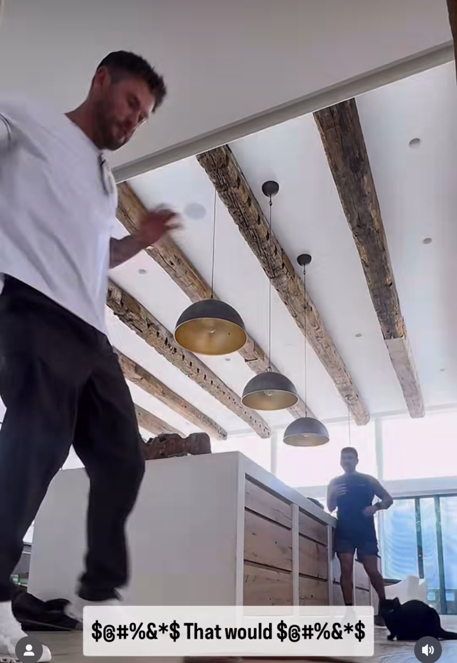It was all part of a cheeky prank set up by his friends and personal trainer, Luke Zocchi, who planted a fake rubber snake on the floor.