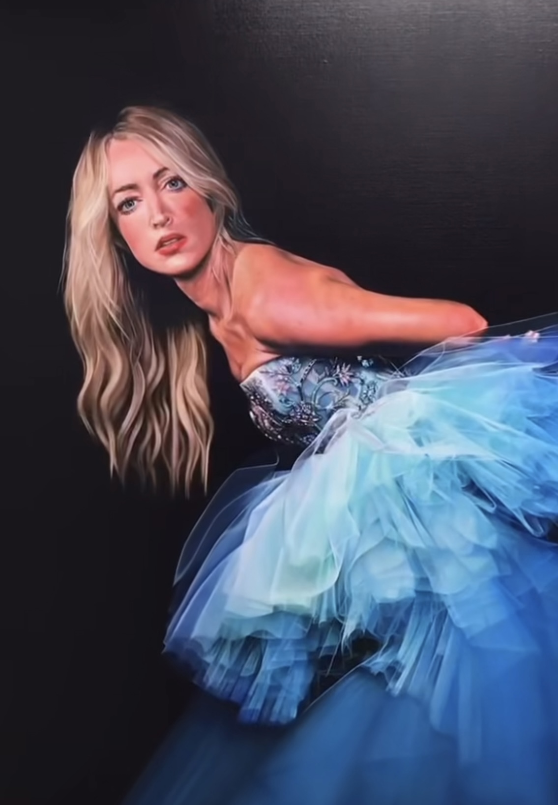 In the portrait, the Kyle and Jackie O star is seen posing in a blue tulle and embellished dress with the painting of Jackie looking incredibly life-like.