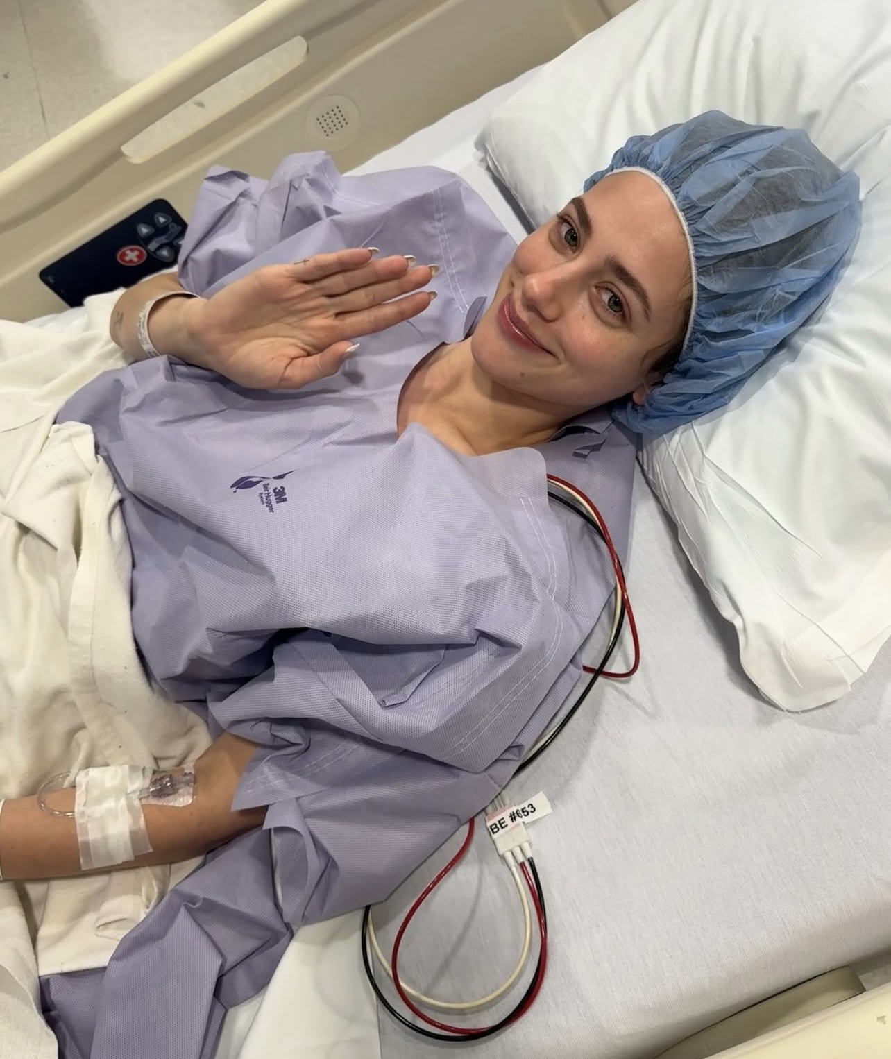 The American actress, 29, shared a series of photographs of herself in a hospital bed after getting keyhole surgery.